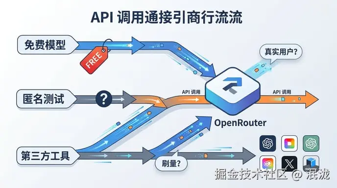 具体怎么操作呢?厂商给某个编程工具提供免费 API 额度,条件是这些调用得走 OpenRouter 的账