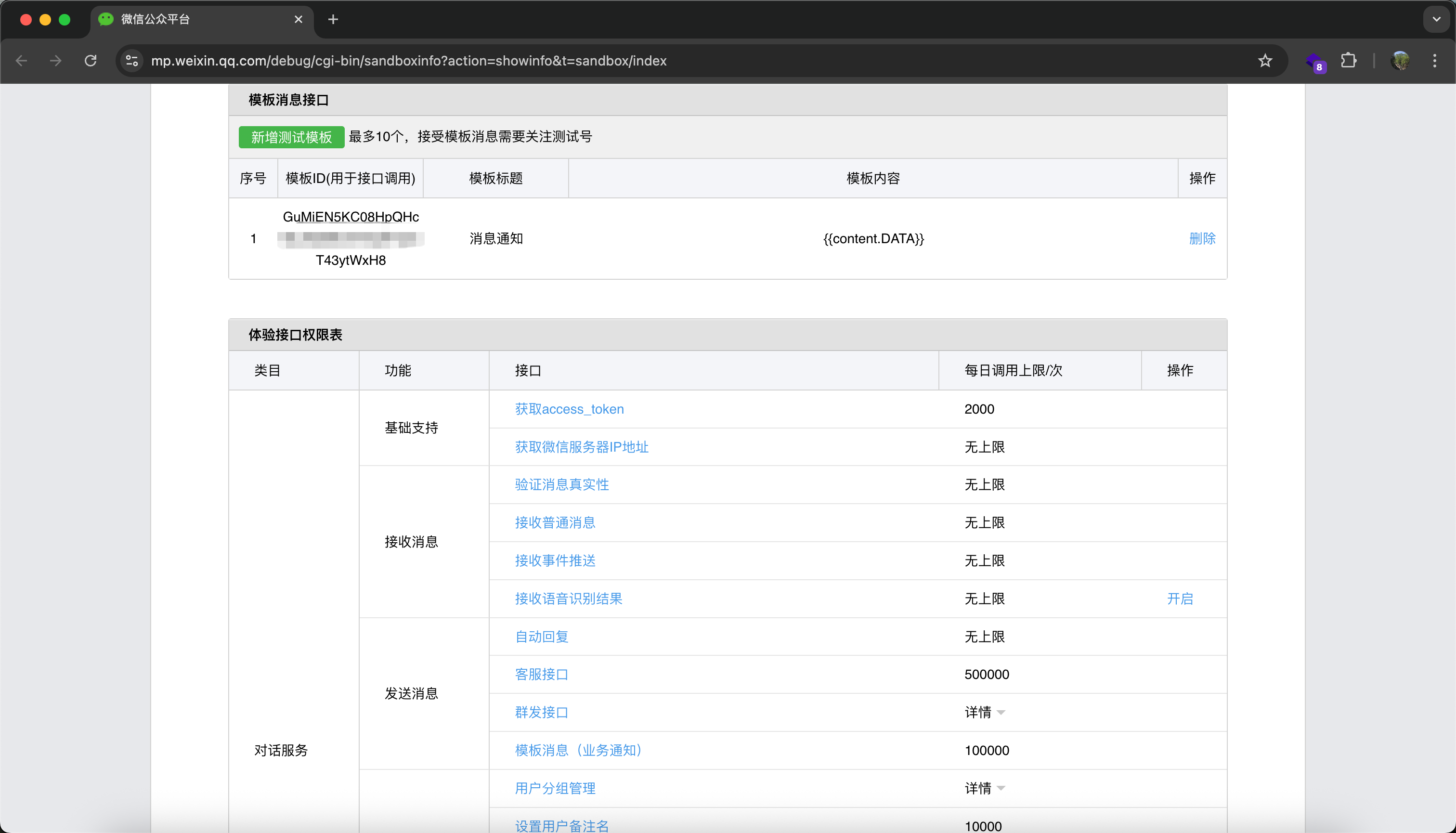 3) template_id ------ 在"模板消息接口"那里新增一个模板