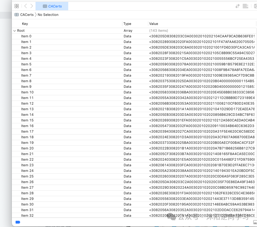 // 读取 plist ------ 得到一个 NSArray<NSData *>(143个 DER 编码的证书)