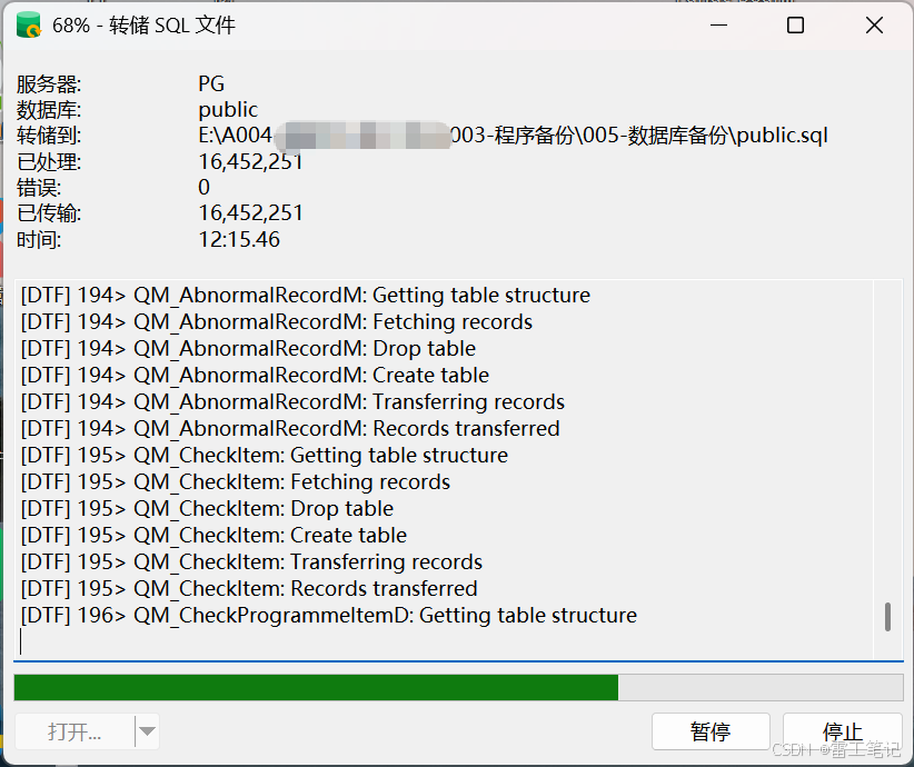 | 3 | 点击开始,等待导出完成;生成.sql 格式文件 |
