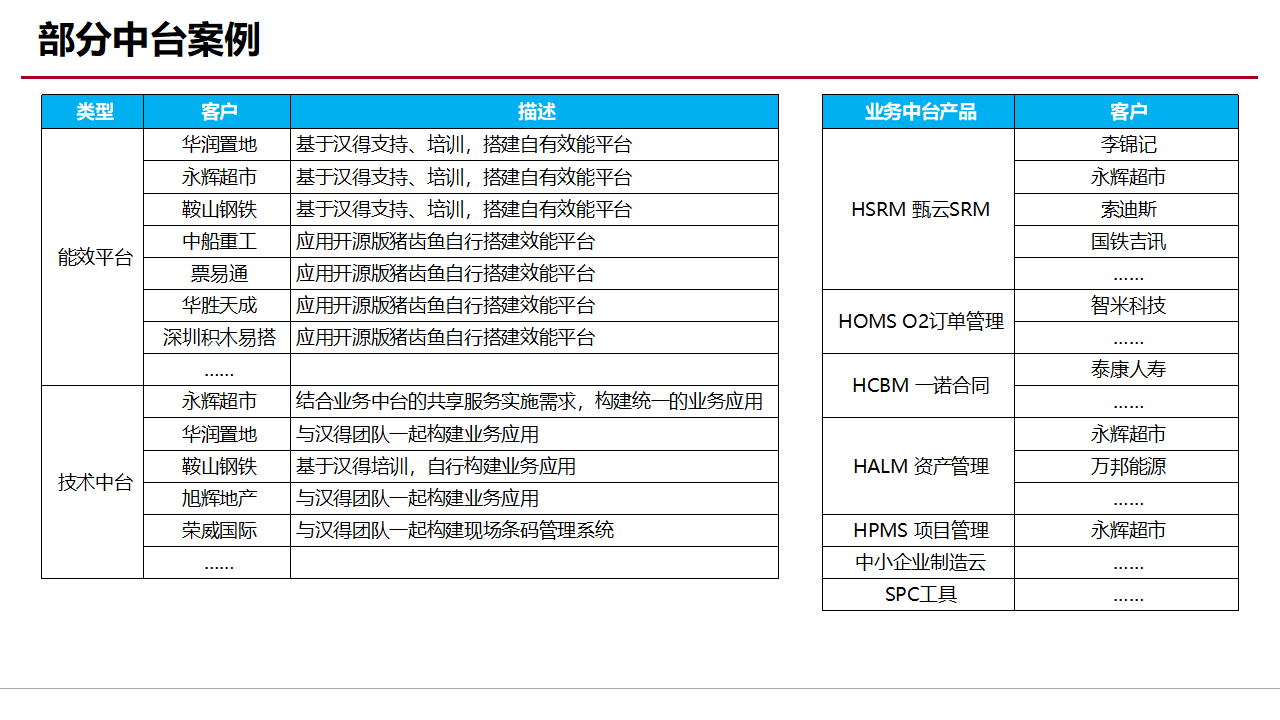 - 共享服务中心:沉淀了SRM(采购)、合同、资产、项目管理等核心业务能力。