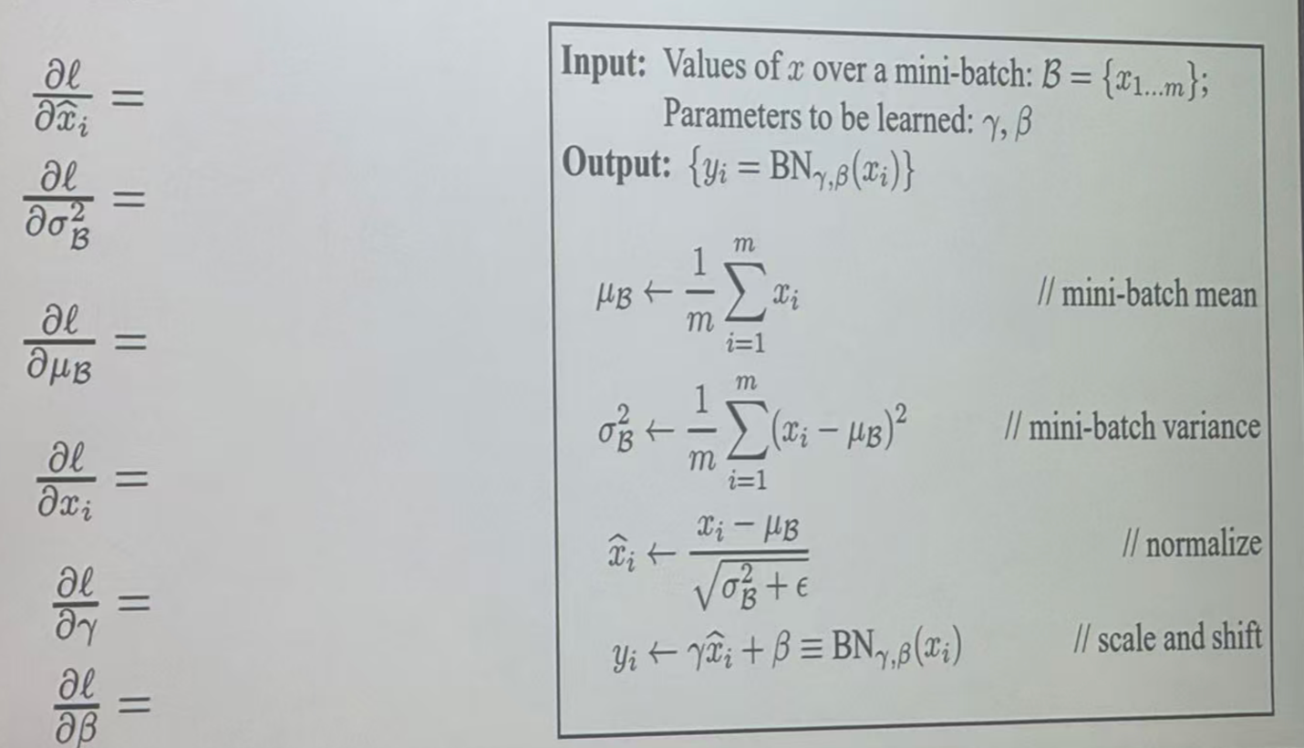 ∂ ℓ ∂ x i = γ m σ B 2 + ϵ [ ∂ ℓ / ∂ y i − 批均值 − x ^ i ⋅ 批协方差 ] \frac{\partial \ell}{\partial x_i} = \frac{\gamma}{m\sqrt{\sigma_B^2+\epsilon}} [\partial \ell/\partial y_i - \text{批均值} - \hat{x}_i \cdot \text{批协方差}] ∂xi∂ℓ=mσB2+ϵ γ[∂ℓ/∂yi−批均值−x^i⋅批协方差]