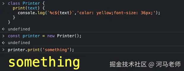 举个例子,假如产品的需求是实现一个专门在浏览器的控制台中输出文本的功能,你可能会这样做: