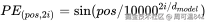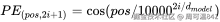 对于位置 <math xmlns="http://www.w3.org/1998/Math/MathML"> p o s pos </math>pos 的 512 维向量,它的每一个维度 <math xmlns="http://www.w3.org/1998/Math/MathML"> i i </math>i 的值,都是通过正弦或余弦函数算出来的: