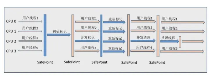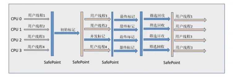 - 并发标记:遍历对象图,标记存活对象,不需要停顿