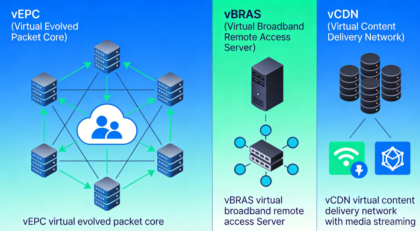 | 计算资源 | x86/ARM 服务器、CPU、内存 | 运行 VNF 的计算能力 |