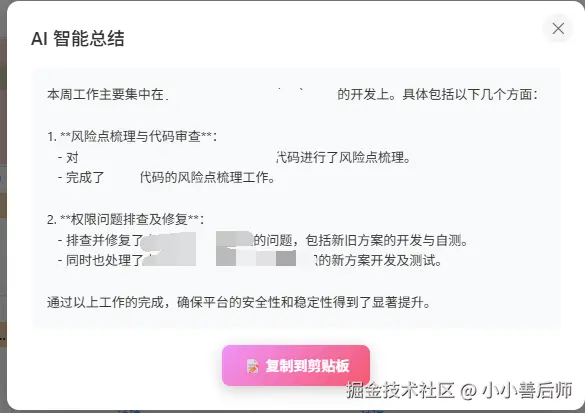 | 3 | 点击"📝 复制到剪贴板" | 内容已复制,可直接粘贴到周报 |