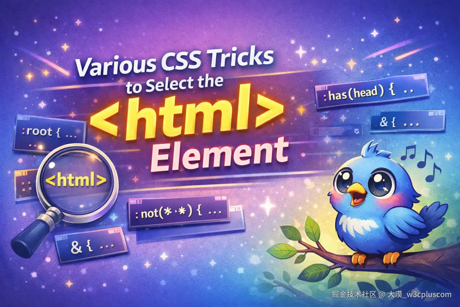 所以,这篇内容并不是在教你最佳实践,而更像是一场轻松的探索。我们会用各种"非常规"的方式去选中 <html>,看看 CSS 选择器的边界到底在哪里------以及,它到底能被玩到多离谱。
