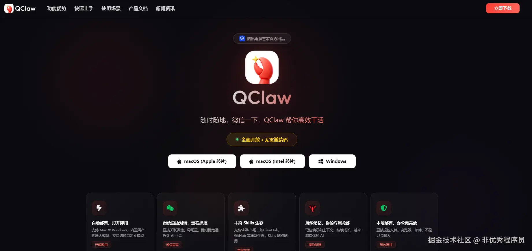 打开qclaw官网
