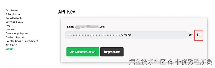 根据网站流程注册账号并获取 API KEY,只要每日查询频率不会太高,免费额度是够用的。记录网站提供的 API KEY,便可以免费获取到股票的信息。