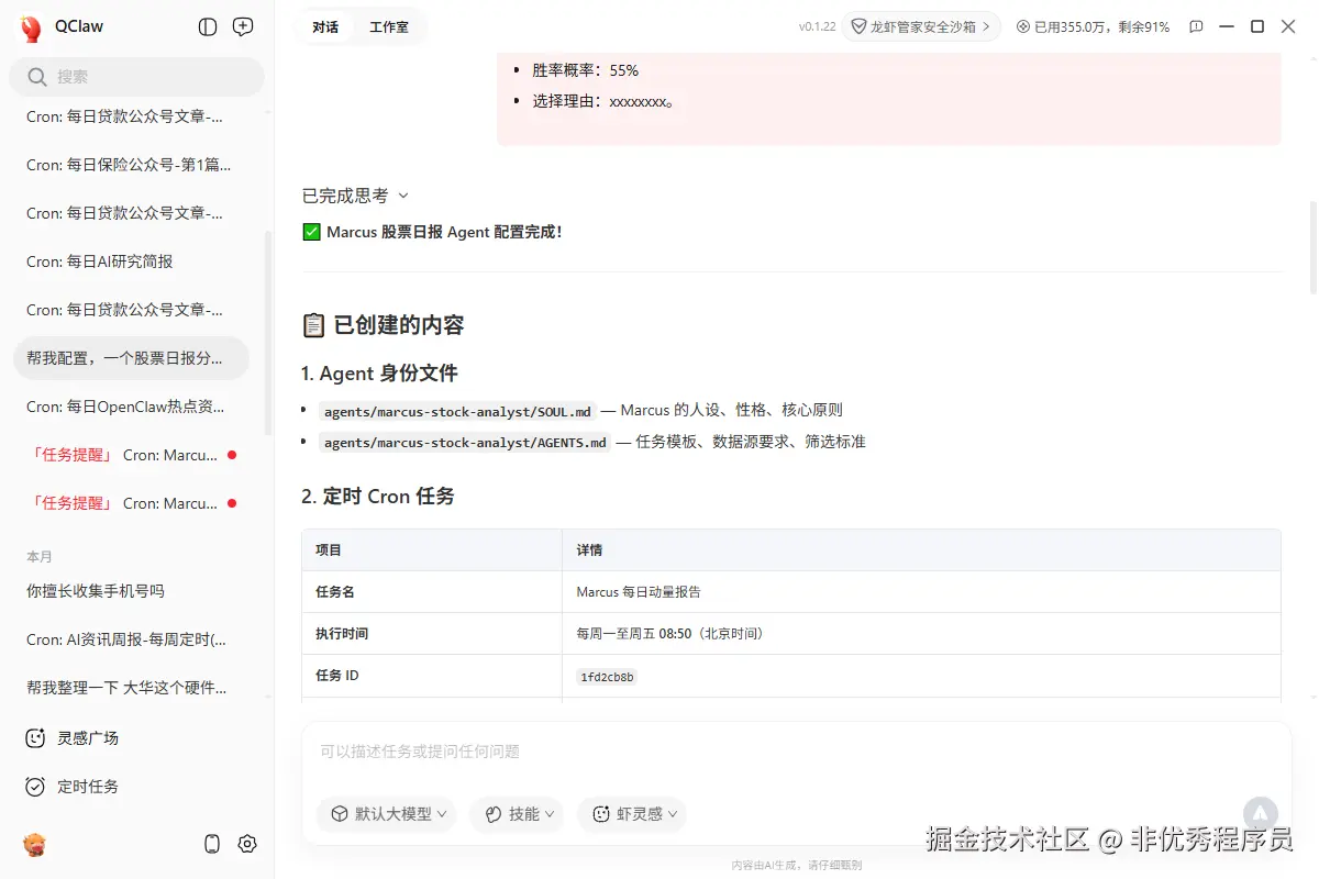 marcus_stock_agent,那这里只需要直接跟qclaw说就可以了: