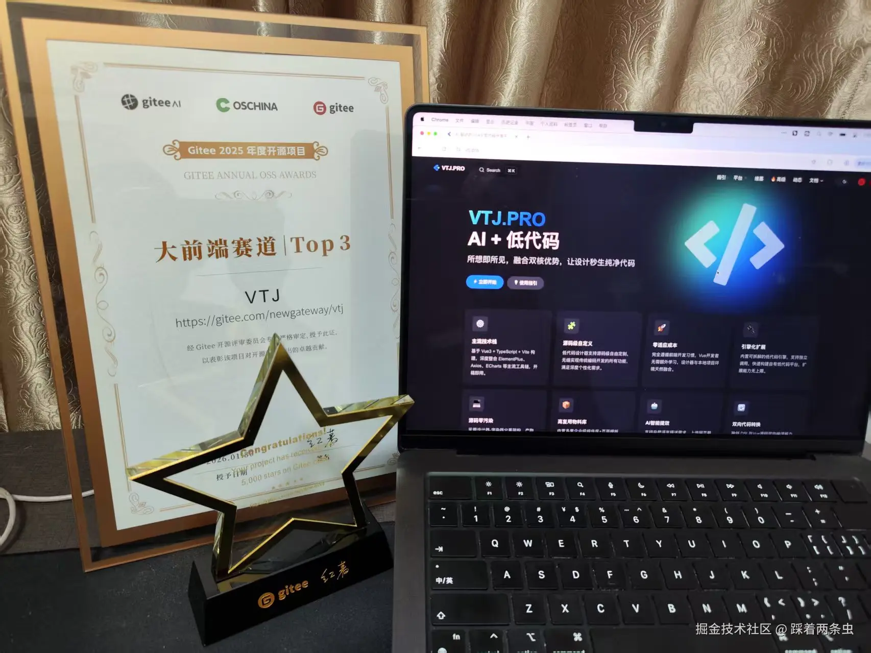 VTJ.PRO 荣获 Gitee 2025 年度开源项目大前端赛道 Top3 ,Gitee Stars 已达 9.9K !