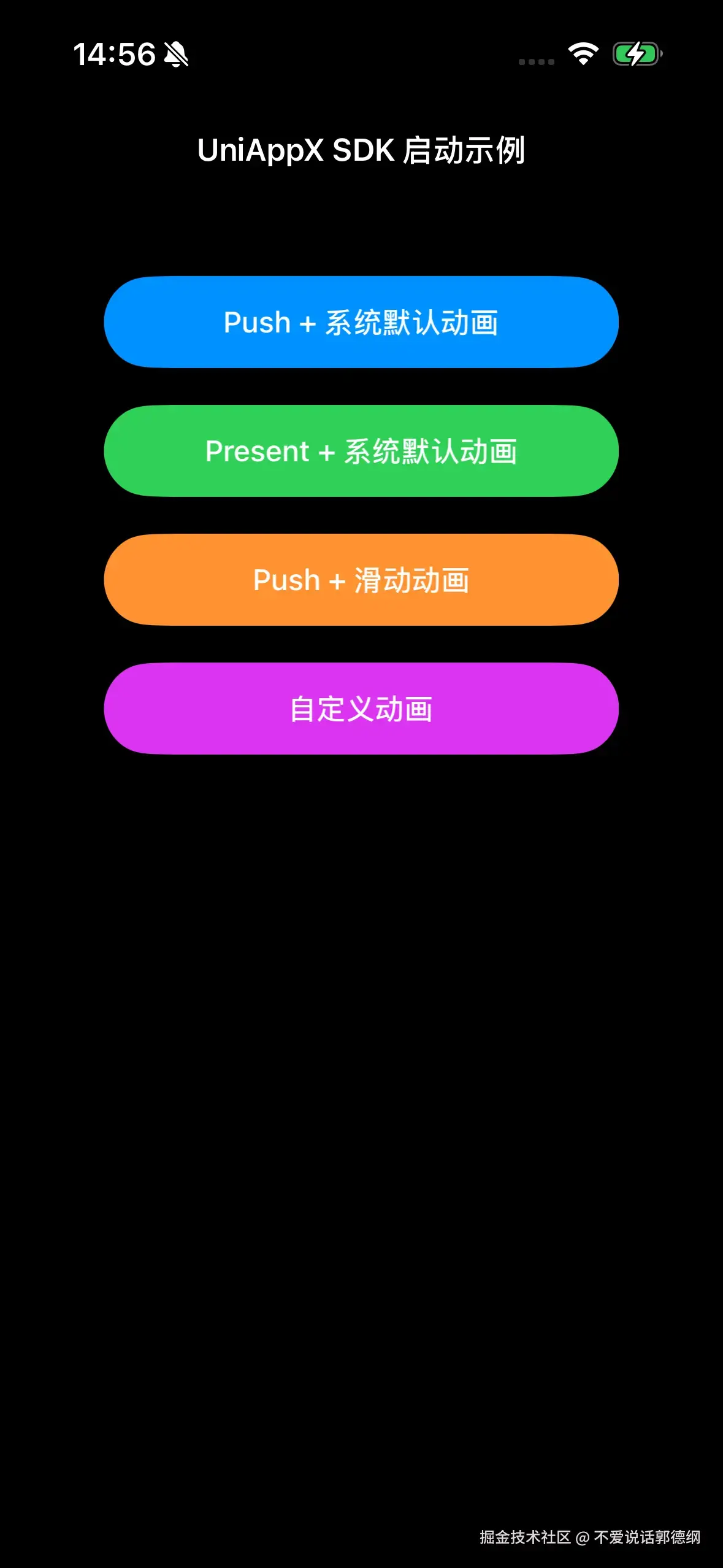 DCloud 给的 UniAppXDemo 默认启动页是一个原生示例页,就是那个 4 个按钮: