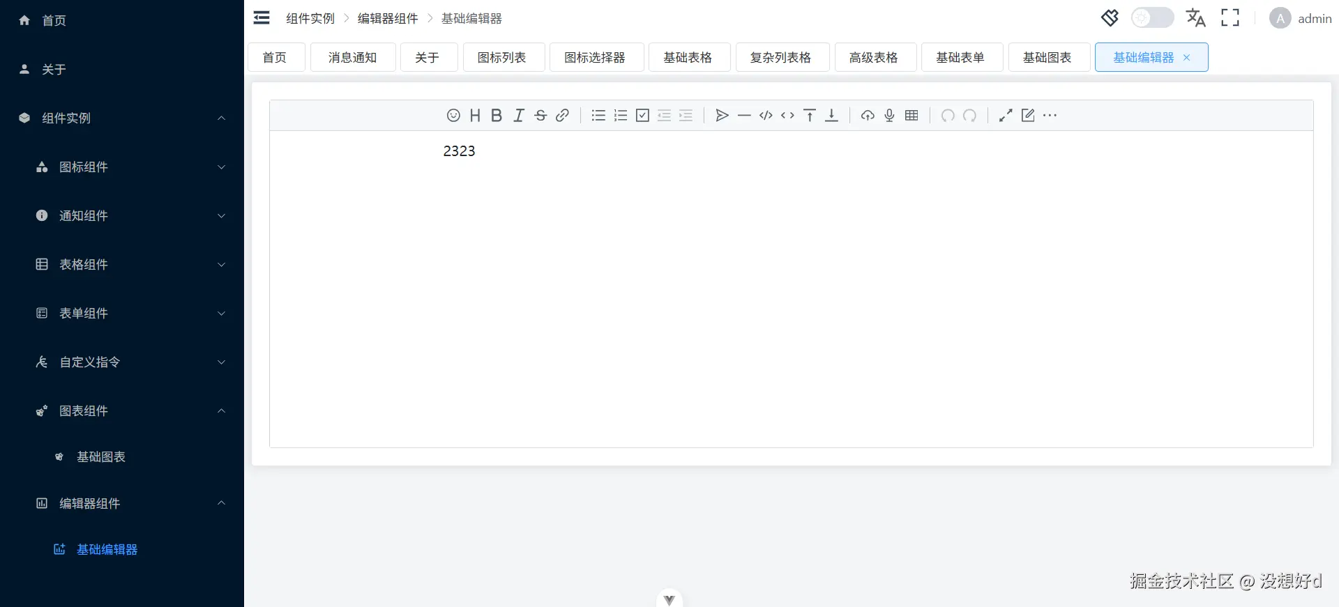 说明:图表组件使用Echarts做二次封装,富文本组件使用Vditor插件做二次封装。