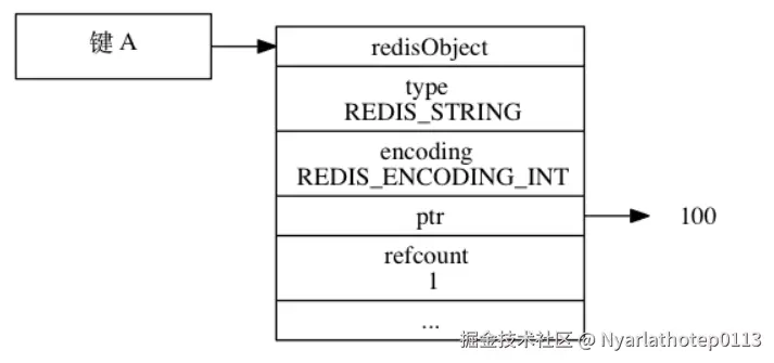 假设键A创建一个包含整数值100的字符串作为值对象