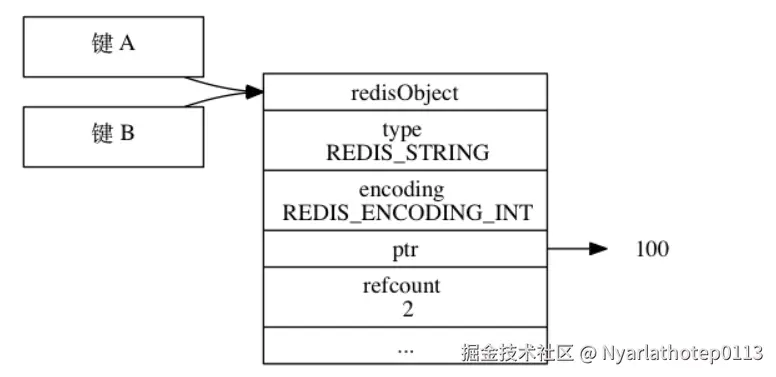 A和键B共享同一个字符串对象;
