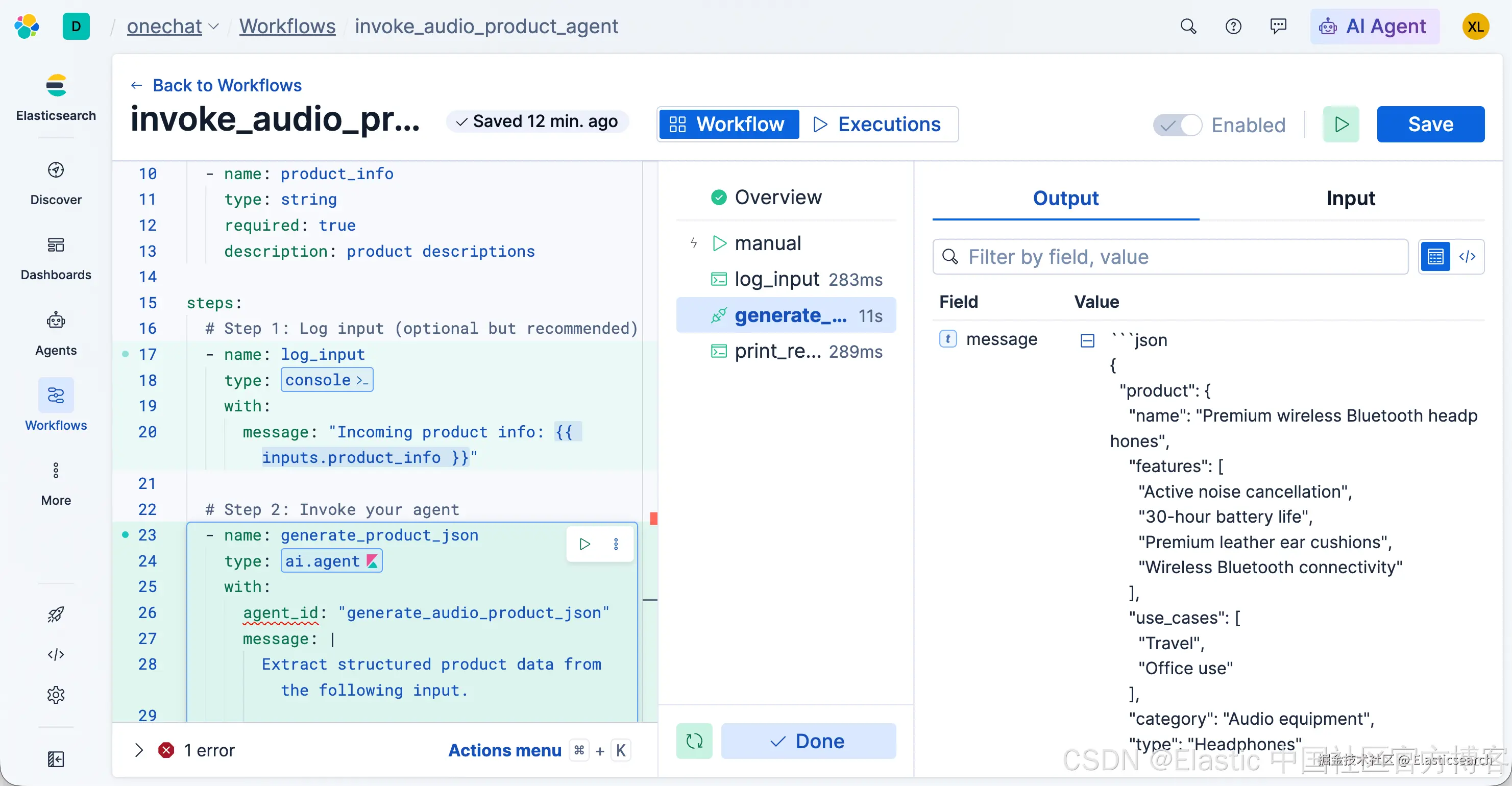 我们创建的一个 agent 的名字叫做 generate_audio_product_json。它是用来解析我们的输入,并提区我们所需要的信息。它的创建非常融, 我们甚至不需要使用任何的工具。