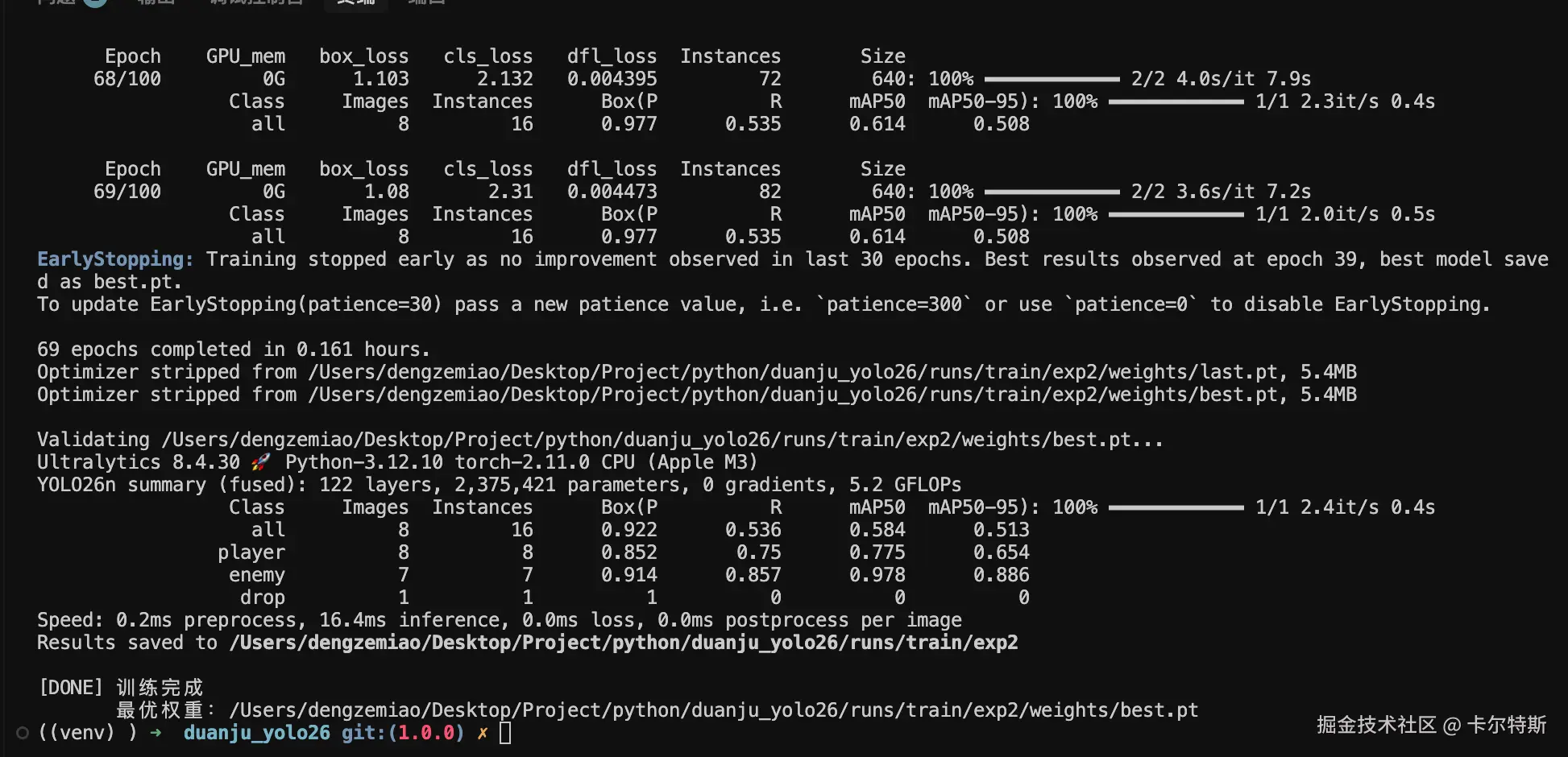 # 训练完成后输出最优权重路径