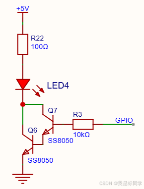 **核心:**第一级三极管电流直接灌入第二级三极管,直接进行放大倍数乘积模式,因此GPIO需求电流可以特别小 微安级别,电路简单