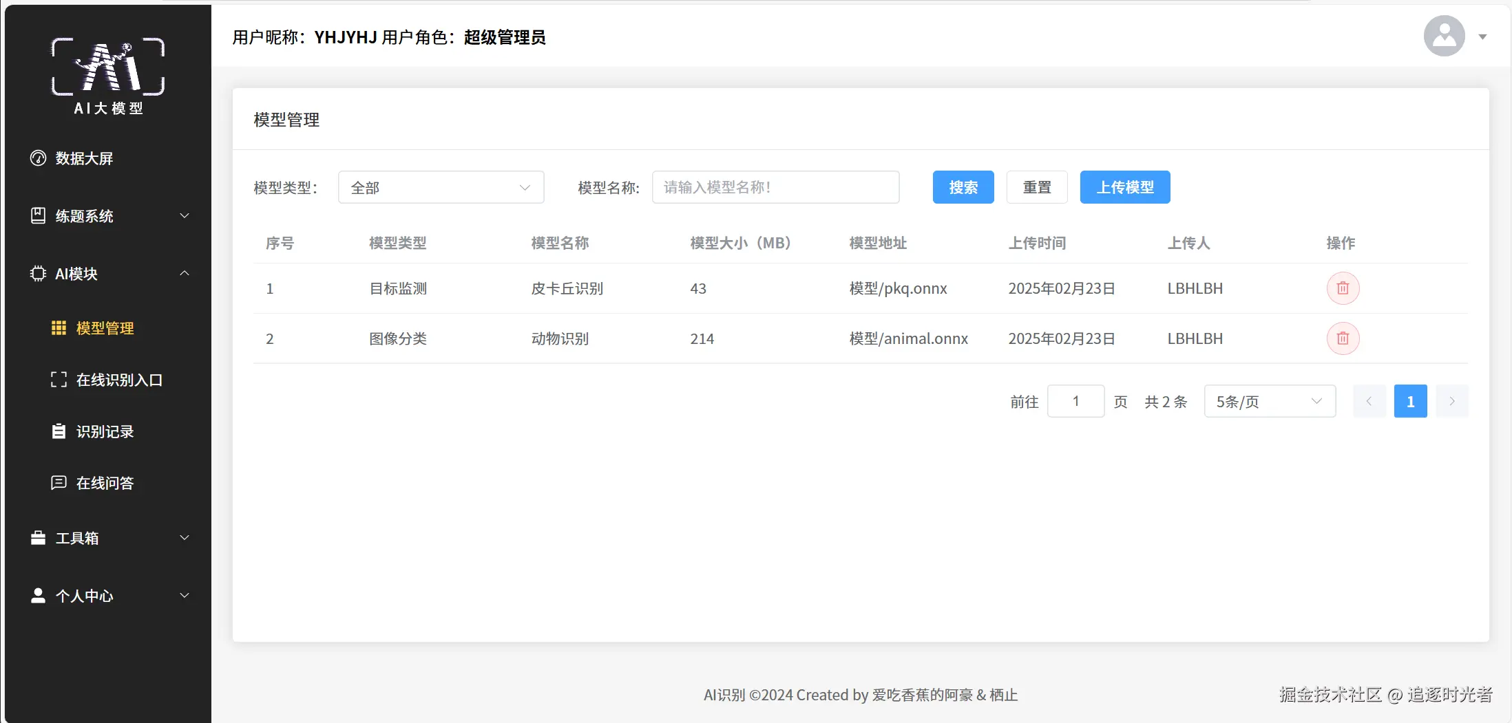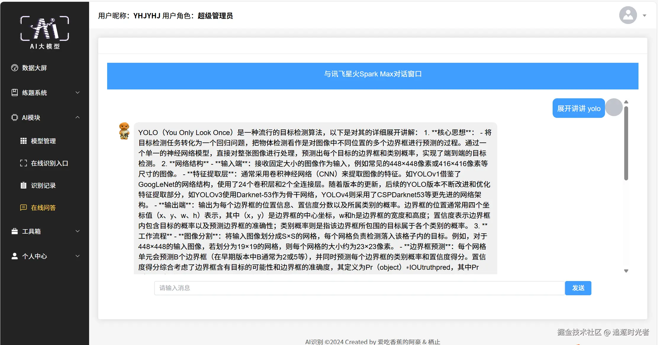ai-recognition-system 是一个基于 .NET Core + Vue3 构建的开源全栈平台 Admin 系统,项目集成 YOLOv8(YoloDotNet/ONNX)实现图像识别,并融合 DeepSeek 等 AIGC 大模型。系统采用 DDD + CQRS +中介者模式,配备动态密钥与gRPC内部通信,保障安全。