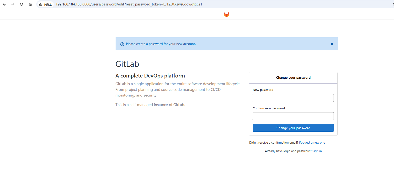 sudo EXTERNAL_URL="http://<您的虚拟机IP>:8888" yum install -y gitlab-ce-13.9.6