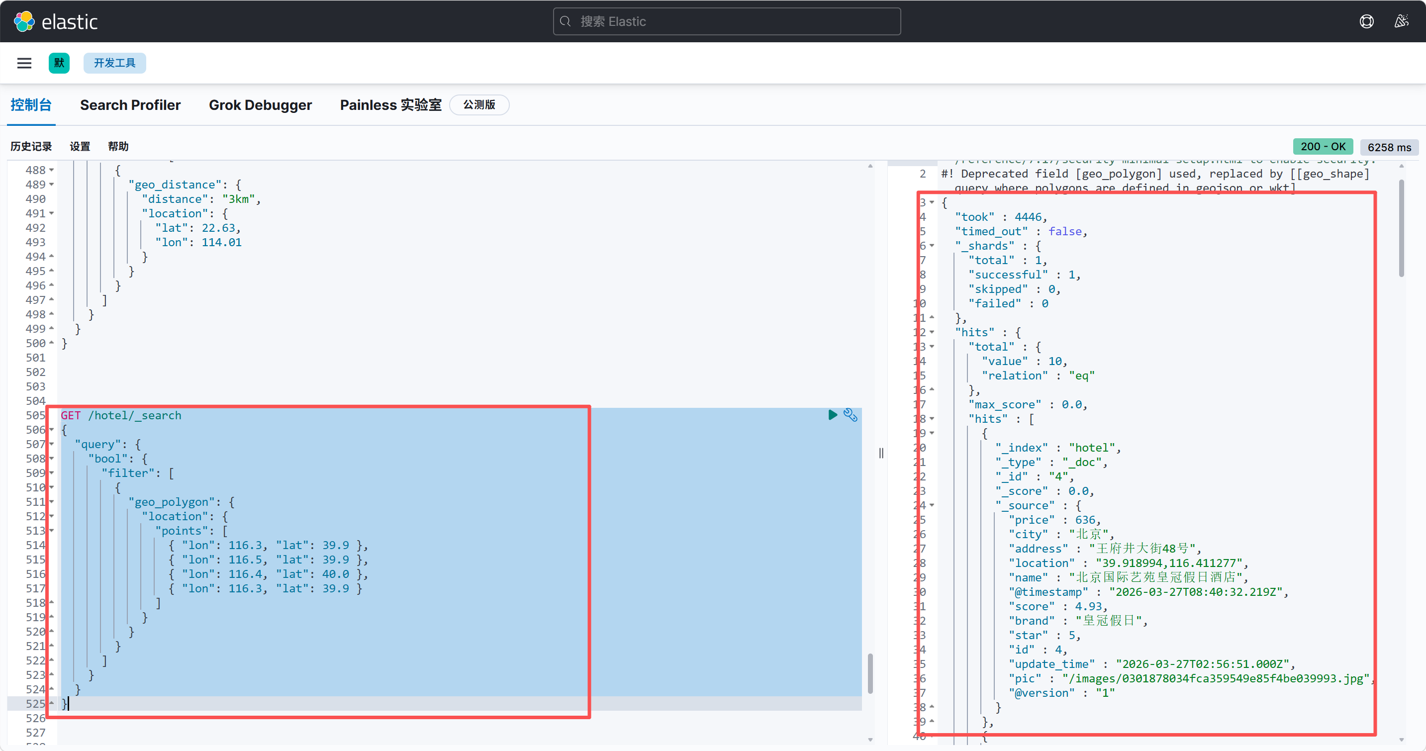 | geo_shape | 地理形状(点 / 线 / 面 / 多边形) | 复杂地理图形 | 进阶场景(区域边界、路线、商圈) |