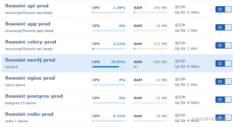 另外容器 neo4j 可能会阵发性的出现高 CPU 占用,系统稳定后就好了