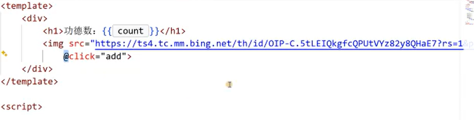 希望点击一次图片调用一次count自增,img中绑定事件用v-on:click
