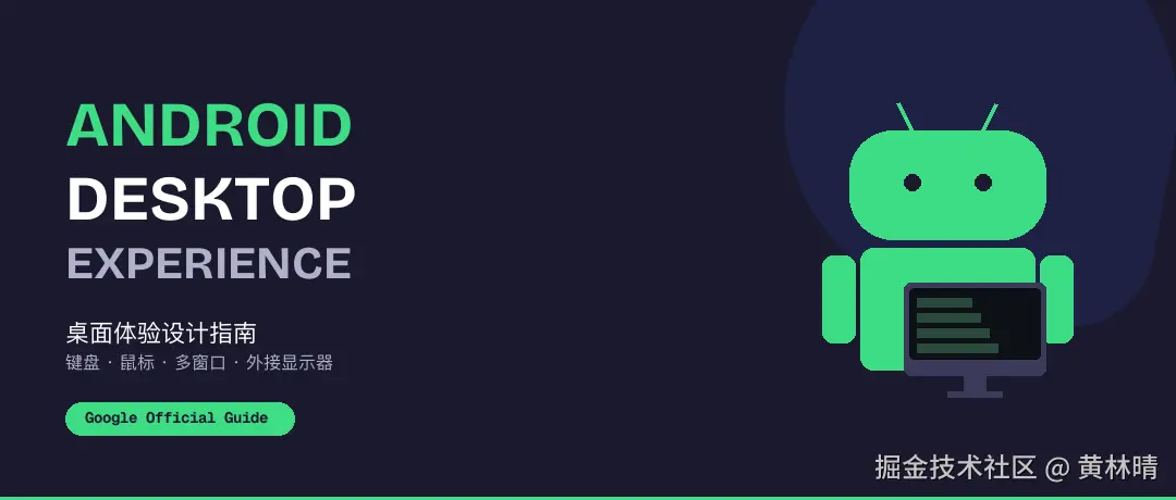 Google 对"桌面体验"的定义很明确:当你的 App 处于桌面模式时------用户通过键盘、鼠标等非触控设备操作,或者 App 跑在外接显示器上------这就是桌面体验。