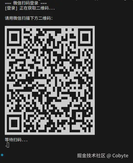 微信 ClawBot 服务端返回的 qrcode_img_content 是一个可以直接扫码的链接。我们在终端里可以通过安装 qrcode 库把它打印成 ASCII 二维码或者直接打印链接让用户打开链接,通过手机微信进行扫码。字段 qrcode 则是服务端的二维码标识,用于后续轮询二维码的状态,是否已经被扫码等。