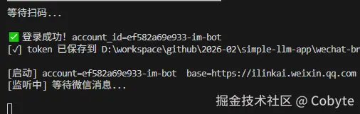 - 扫码登录,拿到微信 ClawBot 的身份凭证;