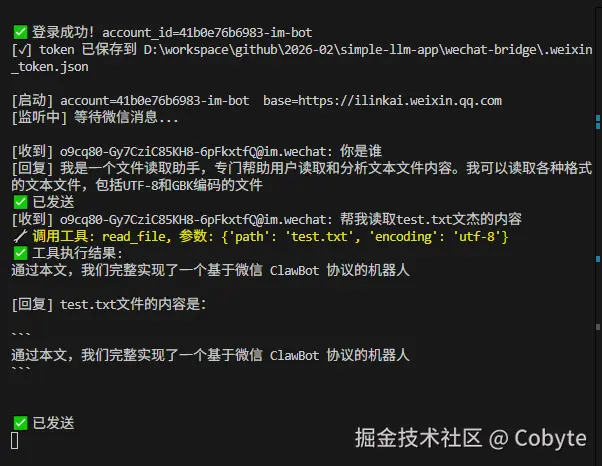 通过本文,我们完整实现了一个基于微信 ClawBot 协议的机器人,它能够: