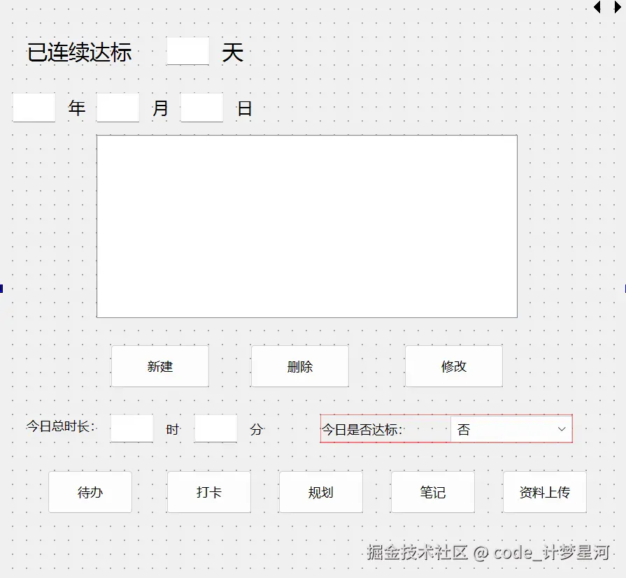 首先,做当天是否达标的修改,核心逻辑就是:修改触发加个槽函数,这个槽函数发送一个带布尔、账号、日期的信号,然后把这个信号传给TcpClient函数,TcpClient接收之后打包信息发给服务器,服务器接收之后通过查找clock_date表来修改这个数据。这部分很简单,代码上比刚才还简单,所以就不附了,反正也是AI写的