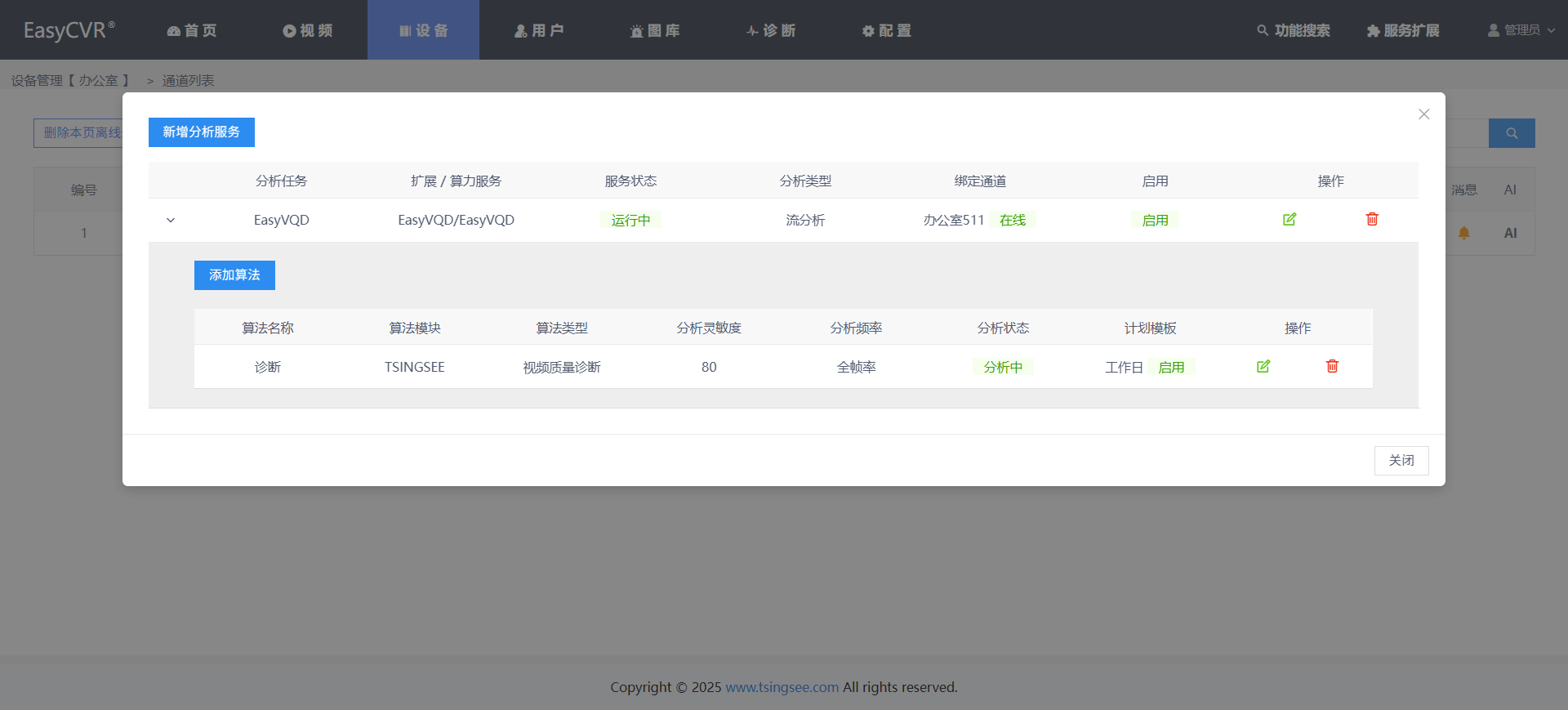 传统人工巡检模式无法适配海量设备的运维需求,不仅需要投入大量人力成本,还存在响应滞后、故障定位困难等问题。在此背景下,市场亟需一种能够集成于视频汇聚平台、无需额外加装硬件、可实现自动化诊断的解决方案,EasyCVR视频质量诊断功能应运而生,其核心目标是通过智能化技术,实现视频质量异常的精准识别、快速告警、高效溯源,大幅降低运维成本,提升安防系统的可用性。