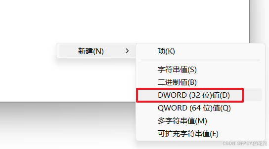 右边页面空白处右键-新建-DWORD(32位)值(D),输入数值名称