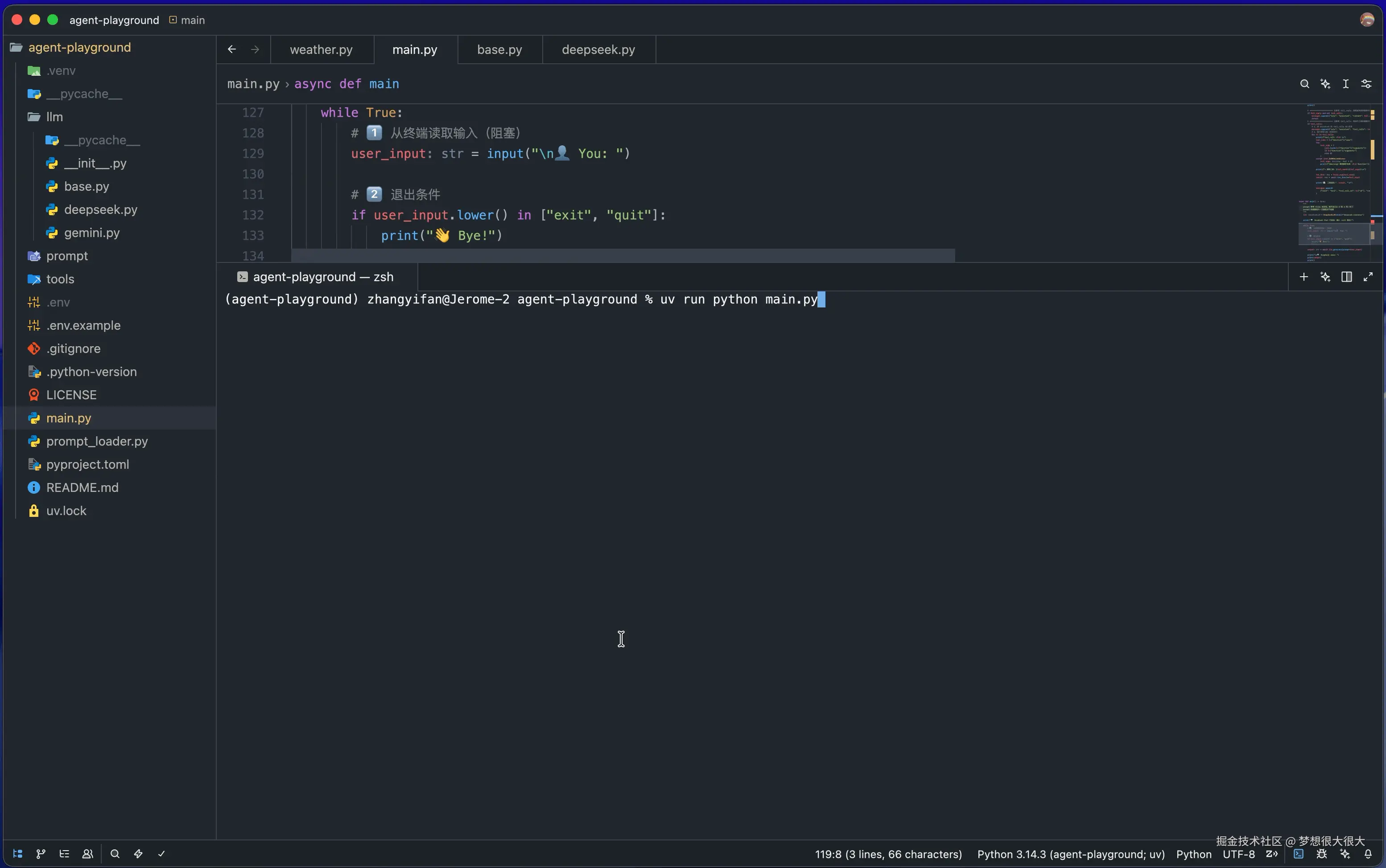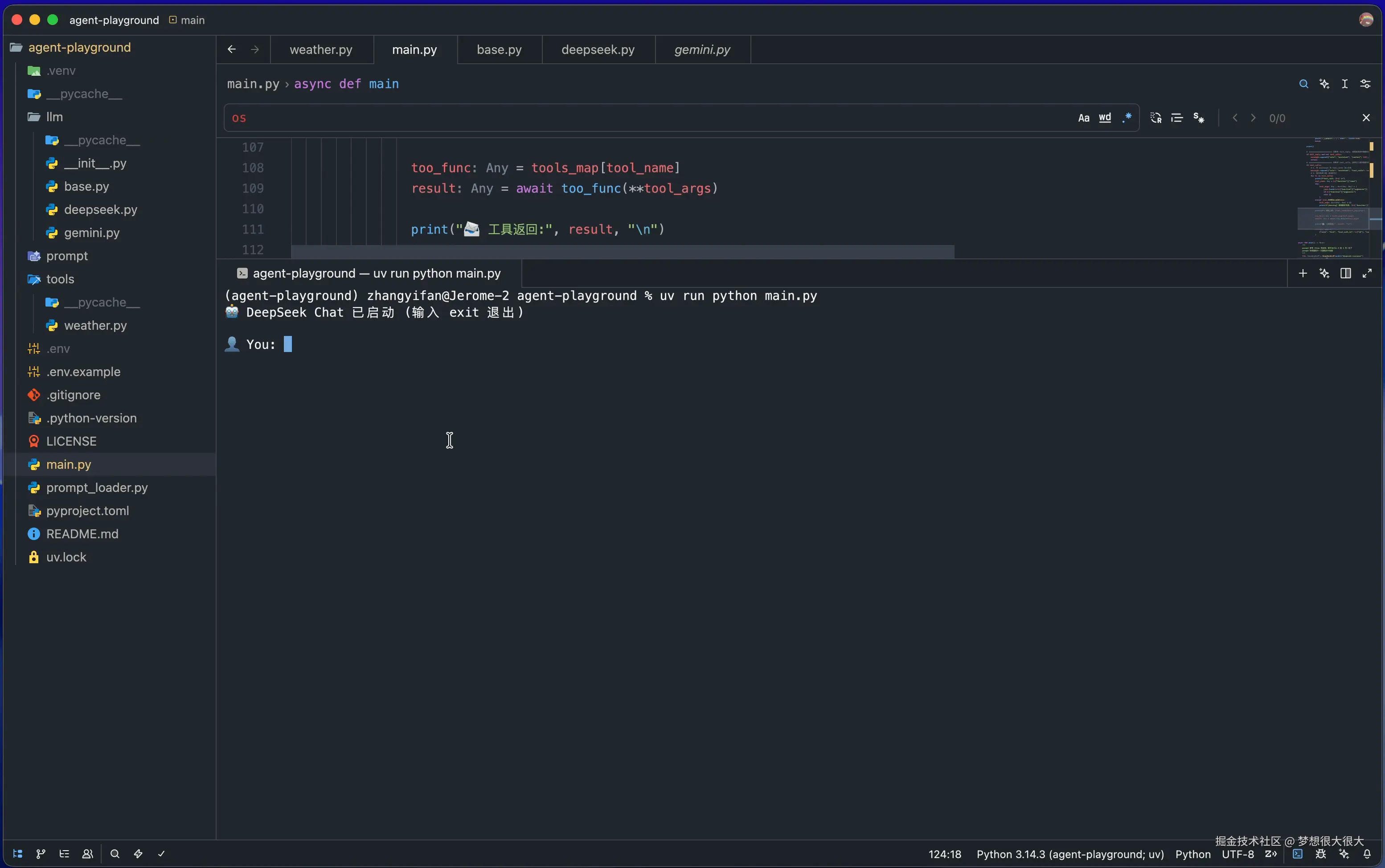 print("🤖 DeepSeek Agent 已启动!(输入 exit 或 quit 退出)")