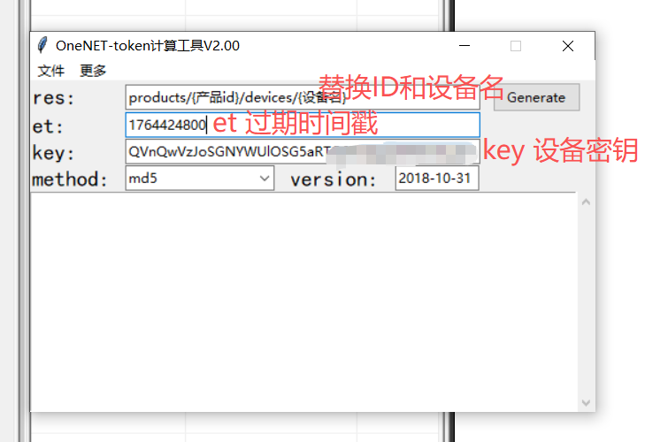 使用OneNET Token 生成工具生成token,用于连接平台