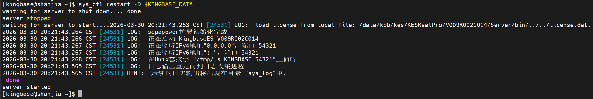 sys_ctl restart -D $KINGBASE_DATA