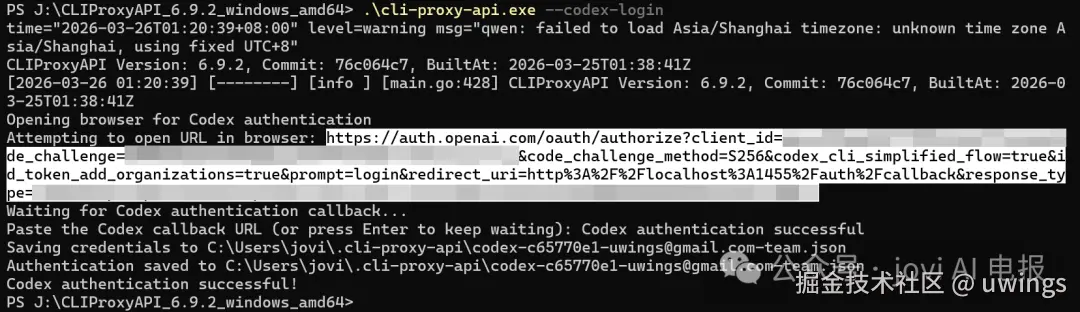 Authentication saved to C:\Users\jovi\.cli-proxy-api\codex-c65770e1-uwings@gmail.com-team.json