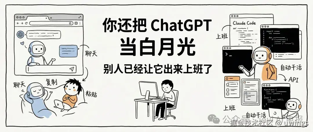 同样是 ChatGPT Plus,你这边还在手动聊天、复制、粘贴,别人已经把它接出来了,不再陪聊,直接上班。