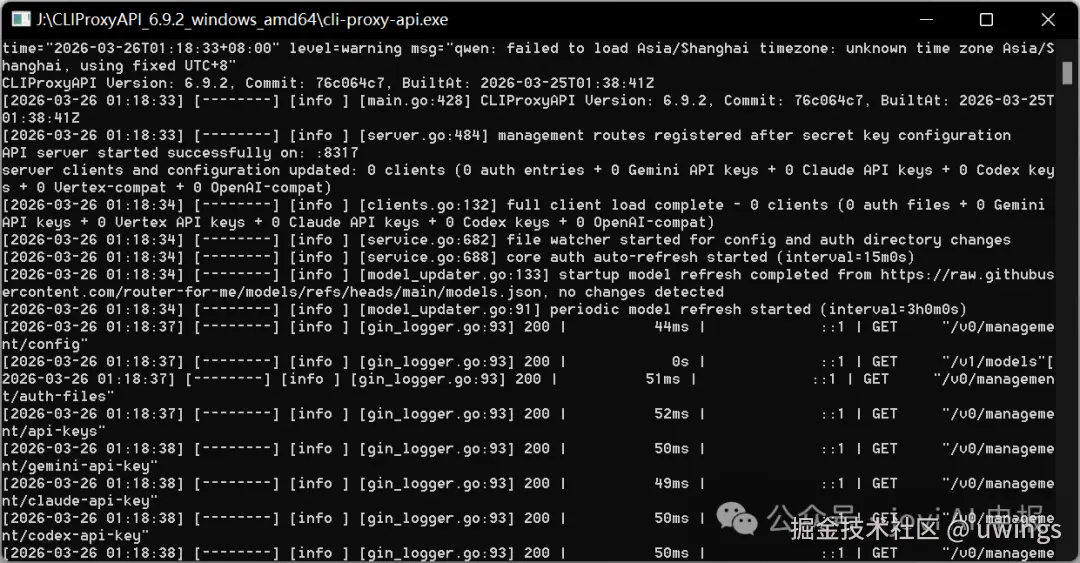 如果你是 Mac,用 Brew 装的那个可执行文件名一般是 cliproxyapi,不是 cli-proxy-api。这个也是个小坑。