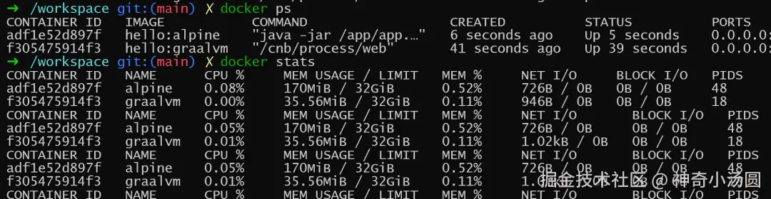 以上只是比较了打包大小的不同,这对graalvm是不公平的,毕竟他的特点是增强 AOT(Ahead-of-Time)编译,降低内存占用,提高启动时间,还是得测试一下: