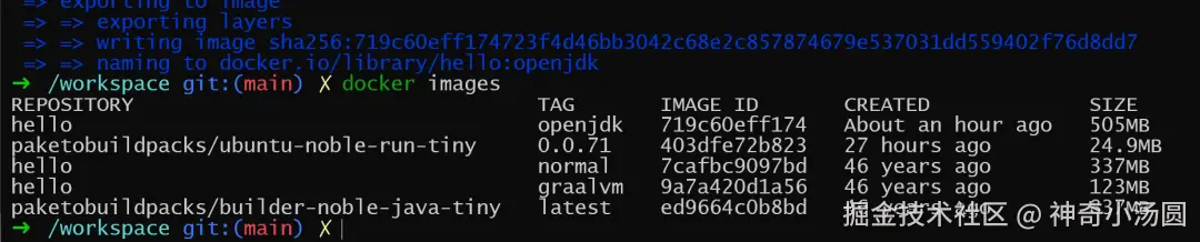根据资料,springboot的默认使用paketobuildpacks/builder-jammy-tiny 镜像,这是一个以ubuntu 22为基础的镜像,大小50-70M:
