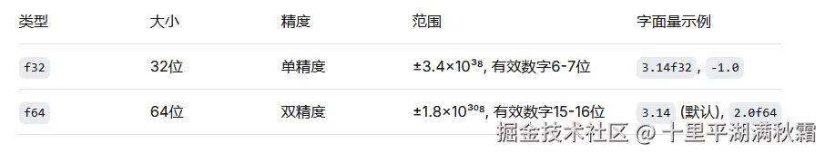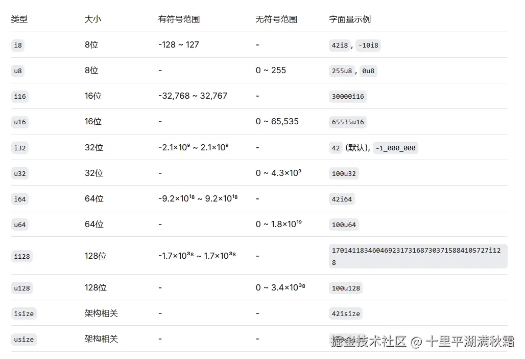 i32 isize/usize:指针大小,用于索引和长度;它们的长度取决于程序运行的目标平台。在64位架构下,它们就是64位的;而在32位架构下,它们就是32位的。