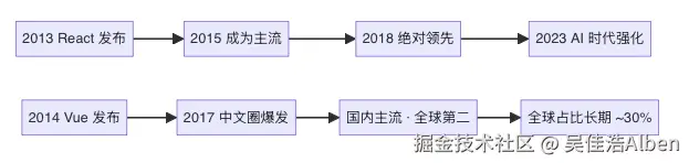 - Vue 在中文生态依然健康,但在 AI 生成代码的世界里几乎隐形