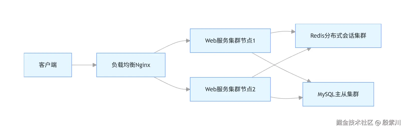 这个场景的核心痛点:单节点的Session存储在本地内存中,集群部署时,用户请求被负载均衡到其他节点,会出现会话丢失、需要重复登录的问题。同时,APP、小程序等非浏览器场景无法原生支持Cookie+Session机制,需要更通用的凭证方案。
