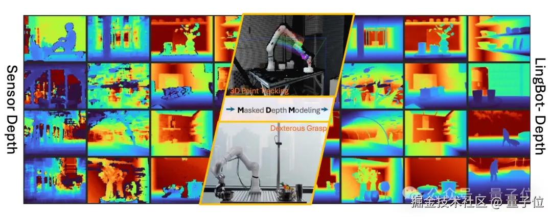 今年年初,蚂蚁灵波发布了 LingBot-Depth 模型 ,LingBot-Depth 主要基于 LingBot-Depth-Dataset 数据集训练,在多项权威深度补全基准测试如 iBims、NYUv2 和 DIODE 上实现了 SOTA。