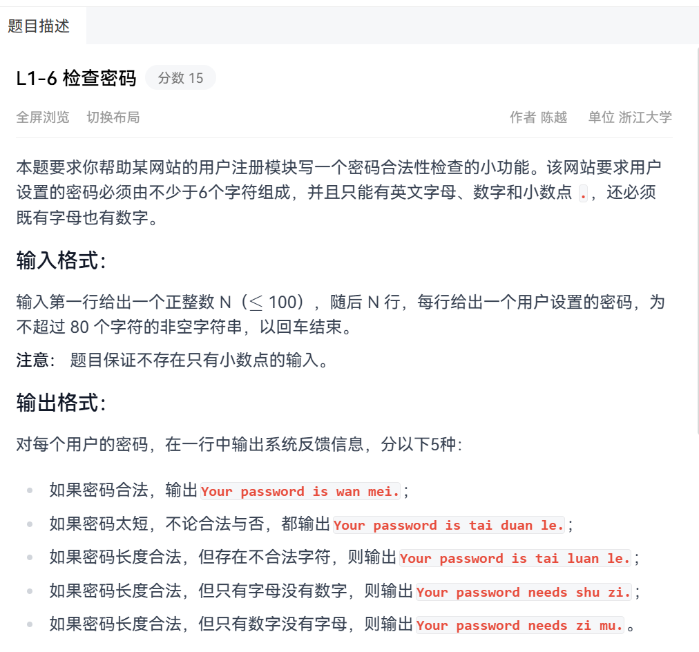 L1-6 检查密码 考点:字符串处理