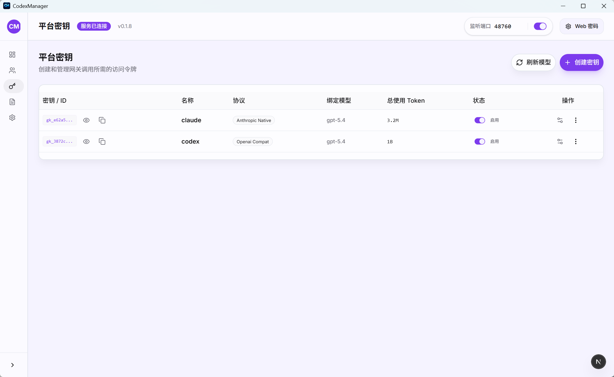 - • 手上有多账号、多平台 Key,需要一个本地可控的统一管理工具
