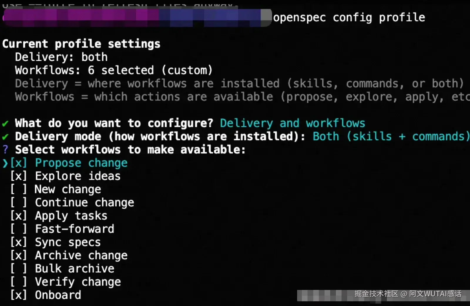 Note2: OpenSpec 的默认仅包含最基础的四个指令 :propose(提议)、explore(探索)、apply(执行)和archive(归档)。 以下指令属于扩展工作流(Expanded Workflow),在默认情况下是不开启的,必须通过openspec config profile手动选择并执行openspec update才能启用